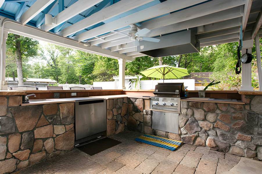 Even a small outdoor kitchen can feel spacious when designed to feel that way. It is not really a question of size but rather of efficiency: how to make the most of each inch without cramming or cluttering space.